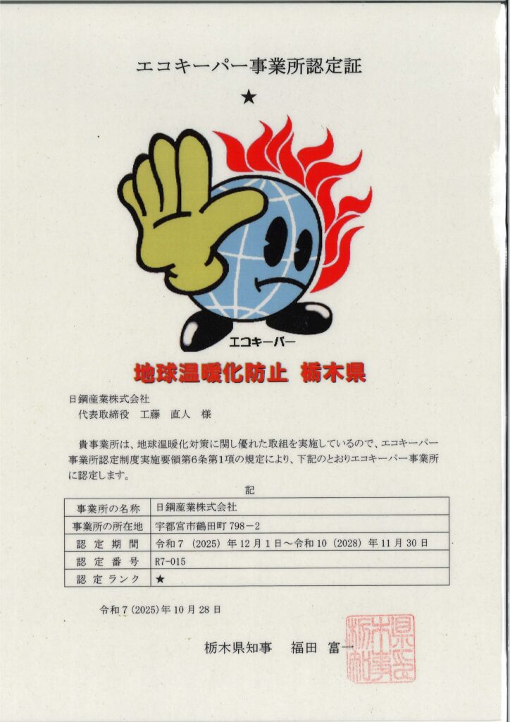 このたび、エコキーパー事業所認定の更新を行いました!